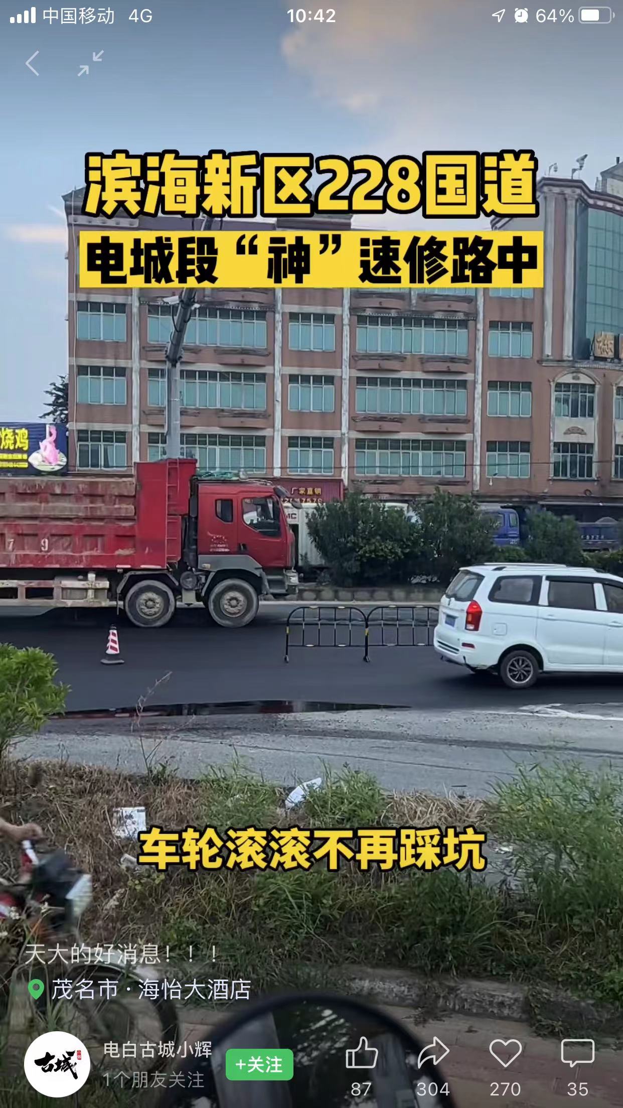 【濱海發展“神”速度】36小時內完成G228國道電城段全幅路面翻修工作