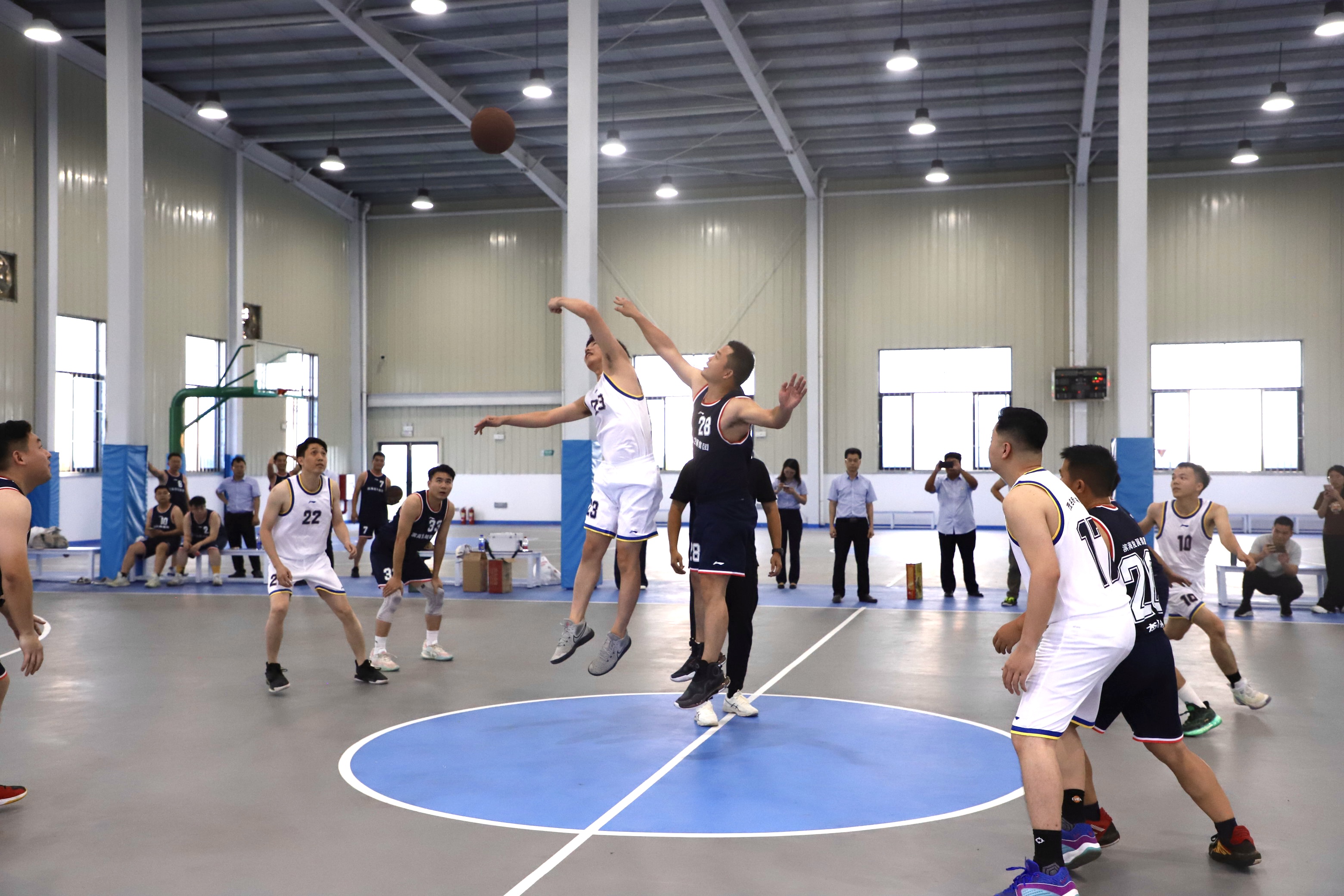 隨著裁判的哨聲響起,激動人心的籃球友誼賽正式上演。雙方隊員斗志昂揚、配合默契,在賽場上揮灑著汗水,現場氣氛高漲,讓青春的活力在球場上迸發。