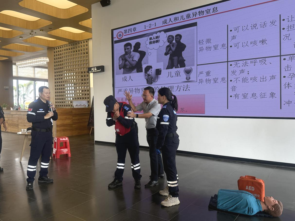 海姆利克急救法是應對氣道異物梗阻的有效方法。教練員通過生動的模擬裝備講解和現(xiàn)場演示,讓員工們深刻認識到氣道異物梗阻的危險性,并詳細介紹了海姆利克急救法的操作要點,包括站位、手法、力度等。員工們在模擬練習中,互相配合,反復練習,確保能夠熟練掌握這一急救技能。